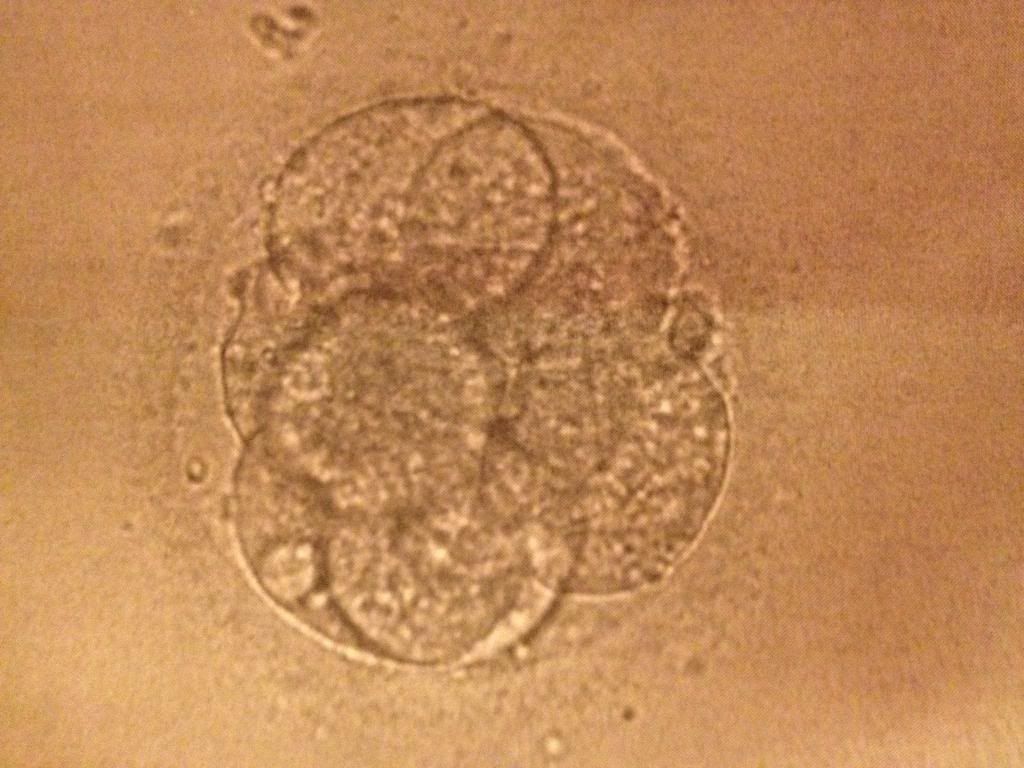 Na de twee vrouwen werden wij geroepen. Niet alleen mijn naam, maar ook die van mijn man. Dat was fijn! We doen dit samen (en we moesten natuurlijk ook samen een contract ondertekenen). We gingen naar de kamer en daar kregen we meteen de foto te zien van ons embryootje. Fantastisch dat ze zo iets bijzonders doen! Dat vind ik echt superbijzonder om het te hebben. Het embryootje is van A kwaliteit en ze hebben er ook eentje kunnen invriezen. Twee totaal dus van de 8. Nog steeds tevrede. Op het contract stond trouwens 'echtpaar', maar dat zijn we officieel nog niet. Hihi, wel leuk om dat te zien.