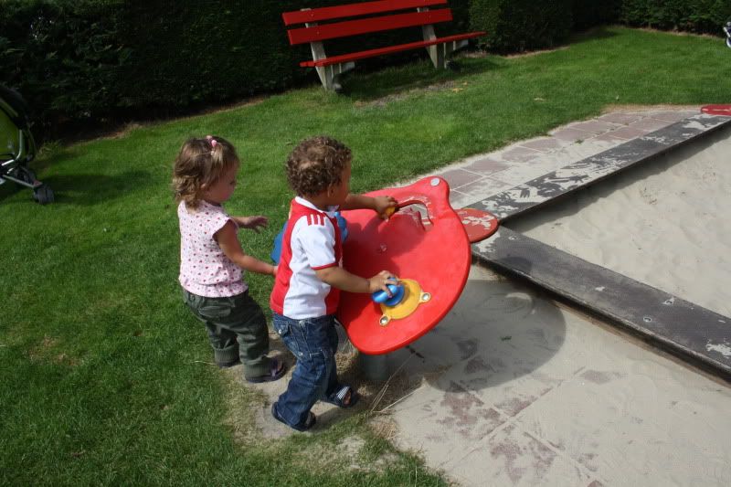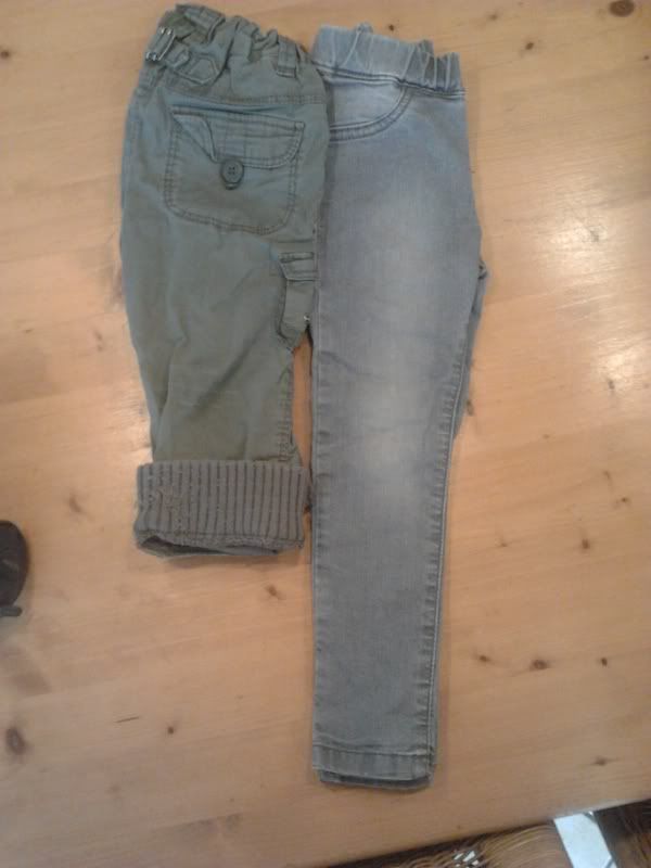 vanmorgen deed ik D naar de creche in haar nieuwe kleertjes.. ik had ze al gekocht maar verwachten wel dat ik nog even de mouwtjes en pijpen om zou moeten slaan... tot mijn verbazing paste ze het precies!!