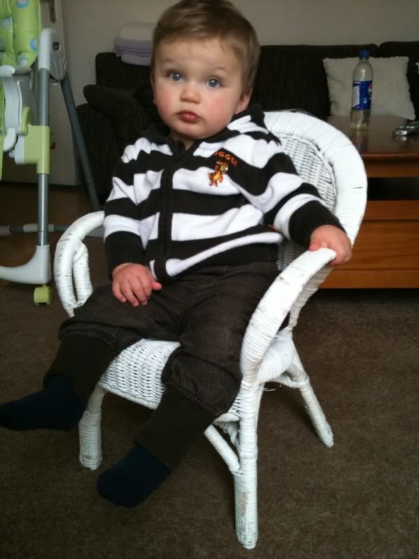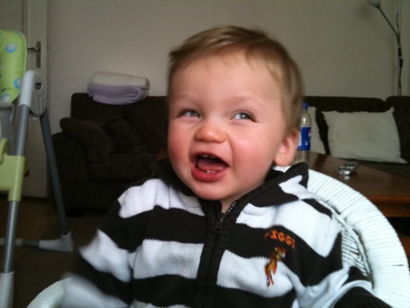 Sommige dingen doet Ekin ook precies het zelfde!! Leuk truitje he die 1ste heeft Ekin ook.. Wordt straks nog meer rennen, ik heb er dan 2:)) Super oogjes heeft hij trouwens.. liefs