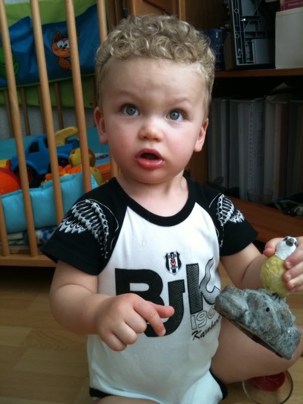 Afgelopen vrijdag zijn we de 15 maanden alweer gepasseerd. Mijn boefje is een echte boef met hoofdletter 'B', dat kunnen we wel stellen. Kattenkwaad is nog steeds zijn middlename, maar wat zijn we gelukkig met onze krullieboy! Ik zie hem voor mijn ogen ontwikkelen tot een echte peuter. Hij imiteert ons bij alles, wat soms tot hilarische taferelen kan lijden. Ik ben über trots op mijn mannetje en bij alles wat hij doet val ik in katzwijm.
