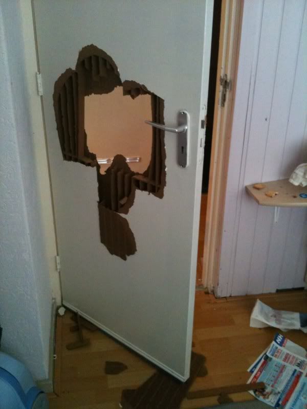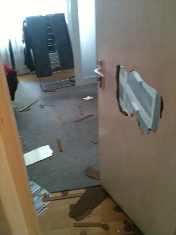 Vanmorgen een angstvallige anderhalf uur doorstaan. Onze kleine man had zichzelf namelijk opgesloten in onze slaapkamer. Al een hele tijd is de sleutel uit het slot, omdat Sami er steeds aan zat, maar gisteravond had mijn man hem er weer in gedaan en vervolgens vergeten eruit te halen. Om negen uur vanmorgen hoorde ik Sami aan de klink trekken en ging ik even een kijkje nemen. Mijn schrik was enorm toen ik zag dat hij hem van binnen op slot had gedraaid. Gelukkig besefte ik direct dat mijn slaapkamer geen verborgen gevaren kent en hij er wel veilig was. Na vele wanhopige pogingen om Sami zelf de sleutel om te laten draaien, kwam ik tot het besef dat hij gewoon niet door zou krijgen dat hij de sleutel weer terug moest draaien. Ik heb alles geprobeerd; de sleutel terugdraaien van de buitenkant met een schroevendraaier, de sleutel eruit duwen om hem op een krant te laten vallen en hem dan onder de deur door terug te schuiven (Sami pakte de krant én de sleutel, dus helaas) en ik heb zelfs geprobeerd de deur open te breken met een grote schroevendraaier. Ik had mijn man al verteld wat er gaande was en die was al op de terugweg van zijn werk en ook had ik mijn vader gebeld, aangezien hij bouwvakker is en mij misschien tips kon geven. Sami bleef in eerste instantie rustig, maar na een half uur begon hij te huilen en werd op een gegeven moment helemaal overstuur, zo zielig!! Hij had vannacht al slecht geslapen omdat hij ziek en verkouden is en hij liep nu dus ook extreem te snotteren. Het is verschrikkelijk als je je kind niet kan troosten als je hem zo hoort huilen! Ik zag hem door het sleutelgat ook wanhopig door de kamer heen en weer lopen. Ik heb nog een koekje onder de deur door geschoven, maar deze wilde hij niet. Om kwart over tien kwam mijn man thuis en hij kwam direct in actie: