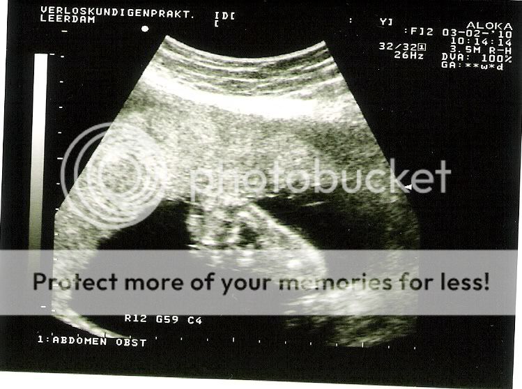 Net bij de vk geweest. Lekker eigenwijs kind dus... volledige stuit. 180 graden gedraaid! Op zich voor deze termijn niet zo erg, maar in mijn geval moet de kleine eerder op de definitieve plek liggen i.v.m. ruimtegebrek door het schot. Dus hopen op nog zo'n draai! Enige 'voordeel' van keizersnede zou zijn dat ze het schot in mijn baarmoeder gelijk kunnen verwijderen. Ze zijn dan toch bezig ;-) Verder moet de kleine er toch uit, dus heb ik het niet voor het kiezen. De kleine maakt het nog steeds goed en heeft hele grote voeten! Net zijn moeder (maatje 42).