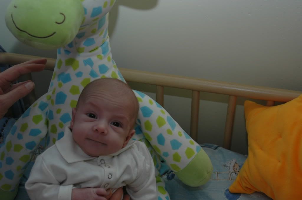 Ik heb nu wel de tijd om Xander gek te knuffelen en dat doe ik dus ook....Met hem gaat het goed, groeit nu goed en kan nu in maat 56, toen hij net geboren was, was zelfs 44 te groot....Hij slaapt vanaf 12 uur tot een uurtje of 7 niet slecht dus, hoop dat dit zo doorgaat. Hij brabbelt, schaterlacht en is erg nieuwsgierig. Afgelopen maandag is het cb hier geweest voor zijn prikjes. Even gehuild maar hij hield zich flink.