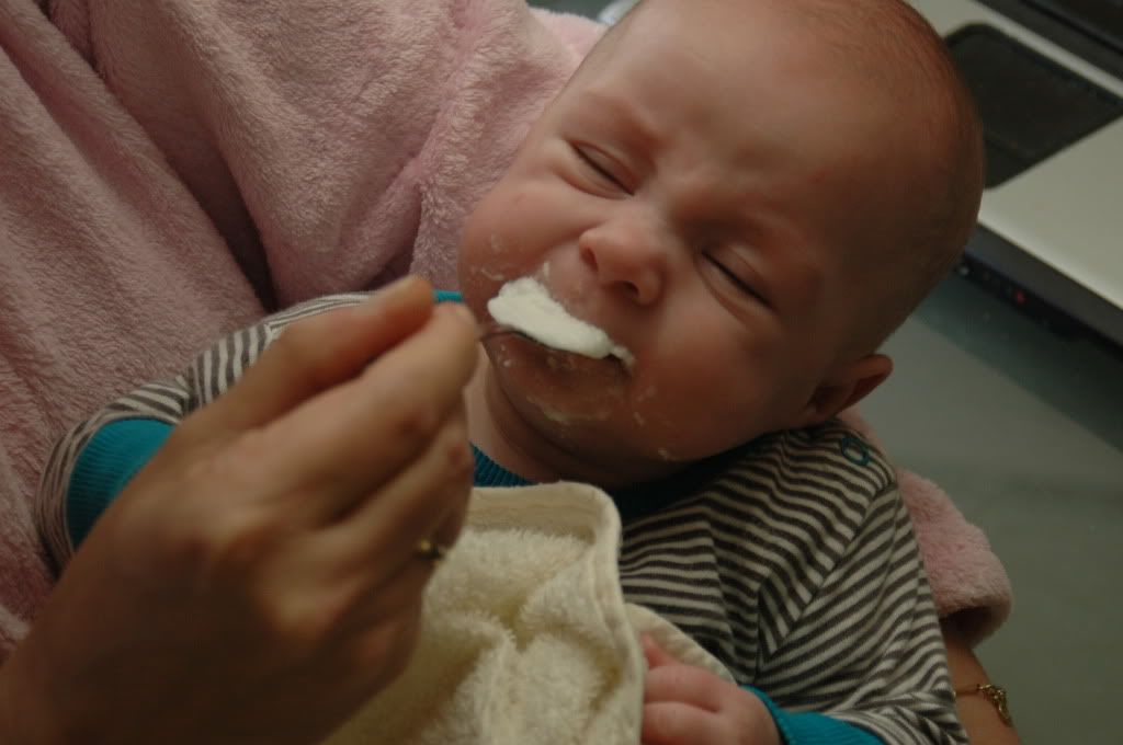 hahahah hij vindt het niet zo heel erg lekker zo te zien meis maar toch heel erg leuk om te zien grappig echt wel jeetje gaat wel heel erg snel he nu alweer 4 maand zeg. het is een leuke ventje van jullie meis