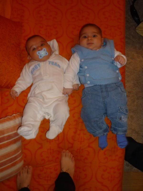 Echt leuk hoor, dat ze dezelfde aanhebben... Je ziet ook duidelijk wie stouter is, HO neemt gewoon de leiding in kattekwaad uithalen