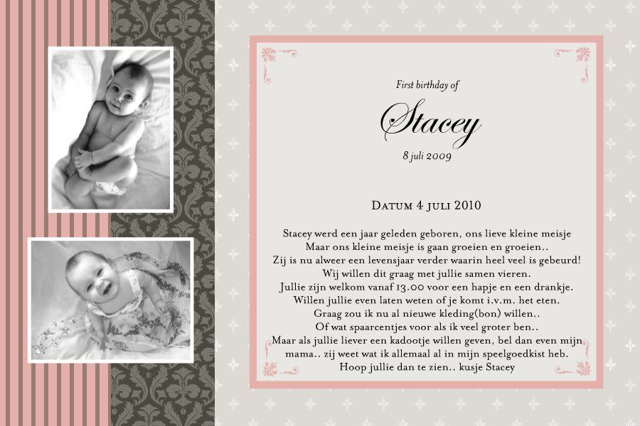 Jeej, wat leuk... Voor Matthijs z'n eerste verjaardag heb ik ze ook zelf gemaakt. Samen met mijn schoonmoeder. Lekker freubelen met confetti. Hebben daar schud-kaarten mee gemaakt met als achtergrond de foto van Matthijs als bakkertje. En de tekst: Mama en ik zijn al druk bezig de taart te bakken...