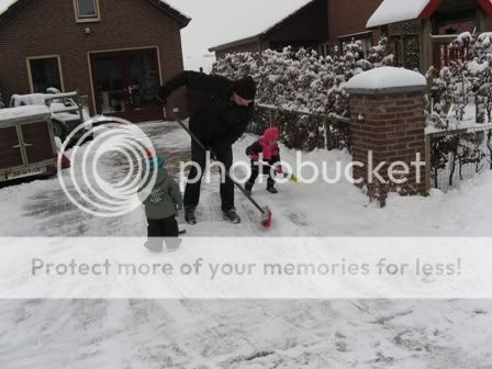 Dena helpt met sneeuwruimen en Mick pakken we lekker warm in.