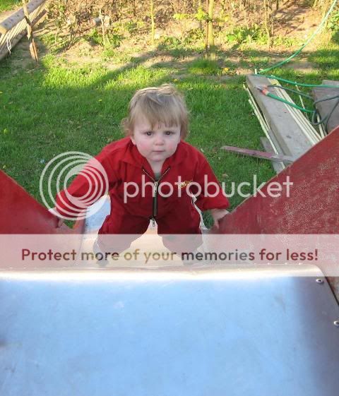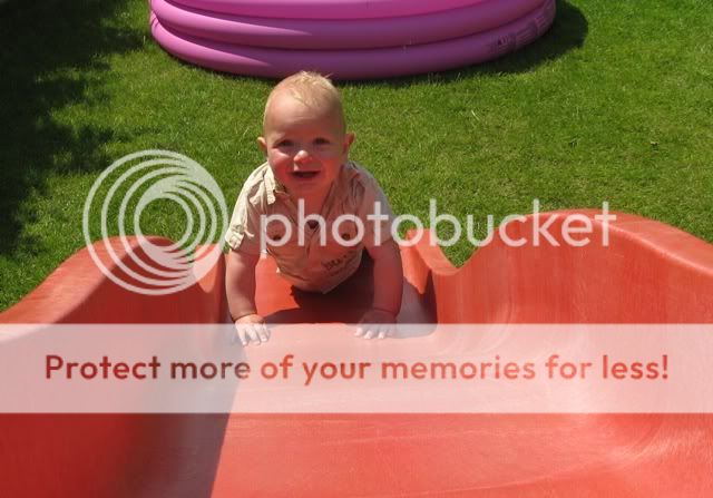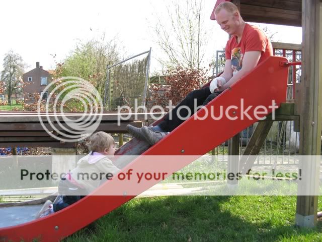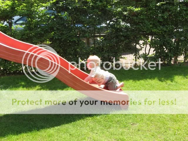 Hieronder een foto van Dena die probeert de glijbaan via de andere kant te beklimmen. Dena is hier ruim 1 jaar en 1 maand oud. Daaronder Mick met 11 maanden die dezelfde poging onderneemt…. Zo zus zo broer…..