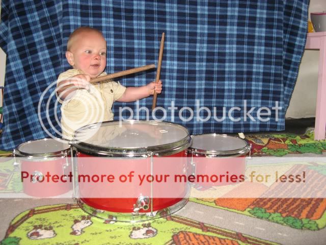 Ook is Mick behoorlijk muzikaal. Nu bieden wij hem ook de mogelijkheid door behoorlijk wat instrumenten hier te hebben. Mick is er ook echt dol op. Zijn grootste favoriet is het drumstel. Zet ik hem s’middags na zijn dutje op de grond, dan sjeest hij gelijk naar de garage om de stokken van het drumstel te zoeken. Handig voor mij is dat ik aan het gebater kan horen dat hij nog lief aan het spelen is.