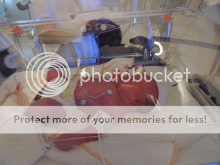 Van de verpleging mochten we even naar Chris toe. Ik werd met bed en al naar de babyafdeling gebracht. Daar lag onze kleine man. Met alleen een pamper om en een hoop slangen in zijn lijf in de couveuse.