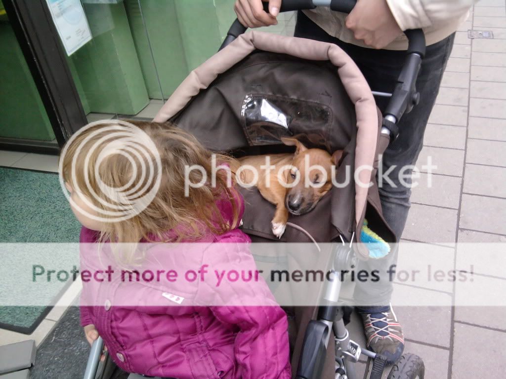 Voordeel aan een pup,als ze moe zijn gewandeld steek je die gewoon ook in de buggy xD