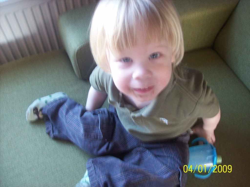 Onze lieve Natas na een hele dag kermis omgevallen op de bank in diepe slaap.