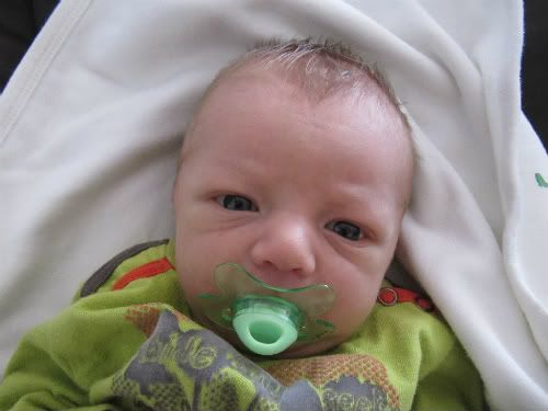 Hieronder nog een foto van Colin en zijn geboortekaartje. Zijn geboortekaartje is een kubus met een elastiek erin. Zodra je de envelop open maakt springt hij uit de envelop. Veel mensen slaken wel een gilletje uit dan hahahaha.... Het ontwerp heb ik zelf ontworpen en de kubus komt bij me werk vandaan.