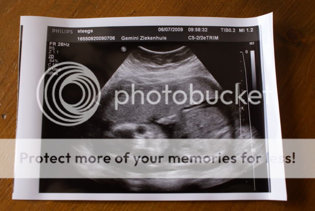 Ik mag volgende week nog een keer terug want de baby lag niet gunstig om het ruggetje te bekijken. Nu is daar waarschijnlijk niets mee aan de hand maar ze wil het gewoon goed gezien hebben. En, hij / zij deed de benen niet open dus... we weten nog niet wat het wordt. Ze dacht wel wat gezien te hebben maar het ging te snel om te zeggen of het een jongen of een meisje wordt. Dus, volgende week dinsdag weer terug naar het ziekenhuis voor het ruggetje en het geslacht, hahaha, lijkt nu al een echte Bijpost, maw, lijkt nu al op zijn vader hahaha. Er is nog niet 1x geweest dat hij / zij goed lag of dat ze het hartje meteen konden horen. hahaha. Dat belooft nog wat voor de toekomst.