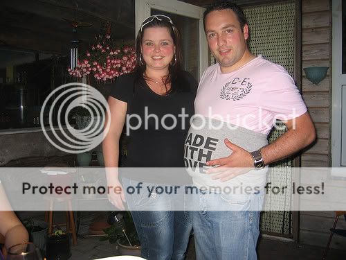 Deze foto wou ik toch echt even met jullie delen, haha, ik kwam hem tegen op de hyves van mijn schoonzusje, foto's van de familiebbq. En ja, papa lijkt toch ook wel een beetje zwanger! Alleen jammer dat je mijn buik niet goed ziet door het zwarte shirt, maar ach.. hij is gewoon leuk hihi.