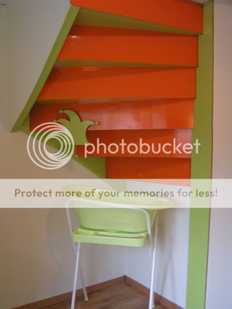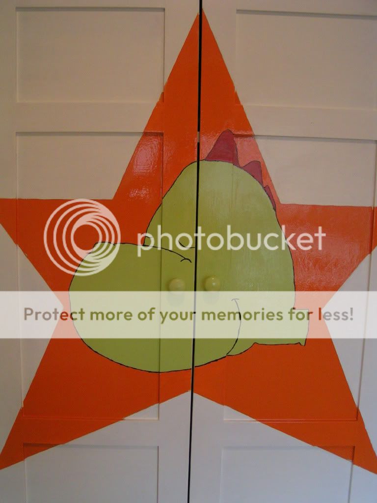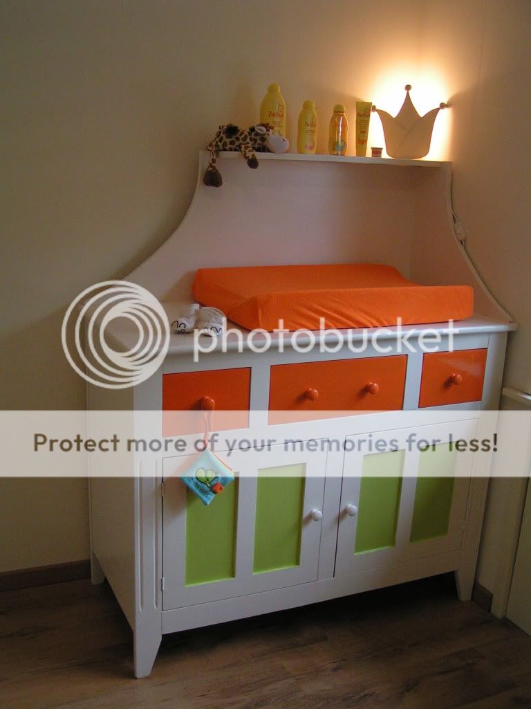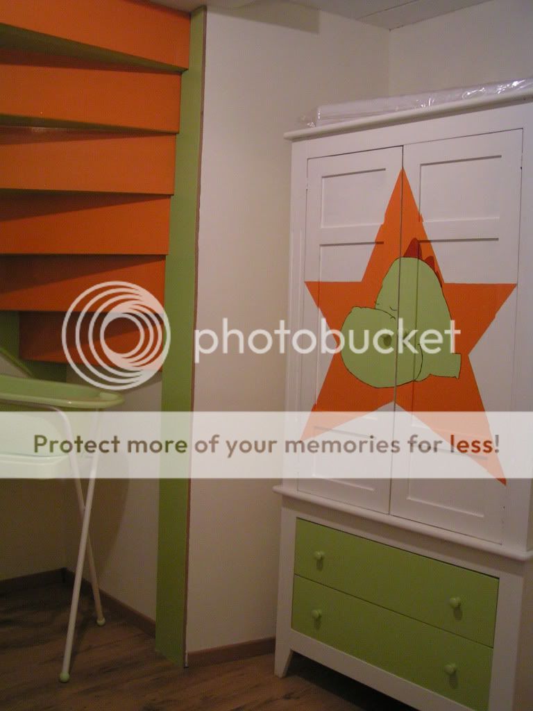De ster op de kast??Is ie zelf geschilderd?Wel leuke combi zo..oranja en groen.