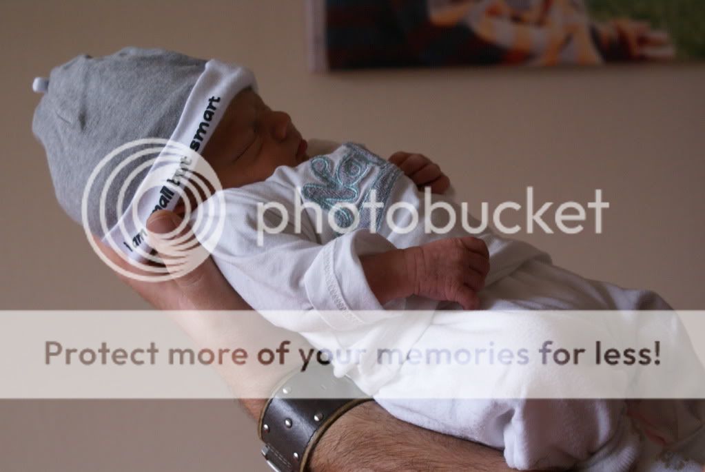 Er zit hieronder een foto bij van de tummietub. Daar heeft ie een handje op zijn hoofd. Waarschijnlijk heeft ie zo in mijn baarmoeder gezeten en zo is ie ook eruit gekomen met de geboorte. Erg grappig om te zien hihihi.