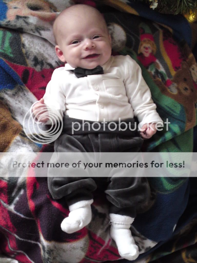 Ons mannetje heeft al een paar keer naar ons gelachen, maar heel toevallig hebben we net ook zijn lachje vastgelegd! Ik ben helemaal verliefd.. Mijn hartje smelt!! (zie foto hieronder) Wat heeft ie een mooi kerstpakje he???